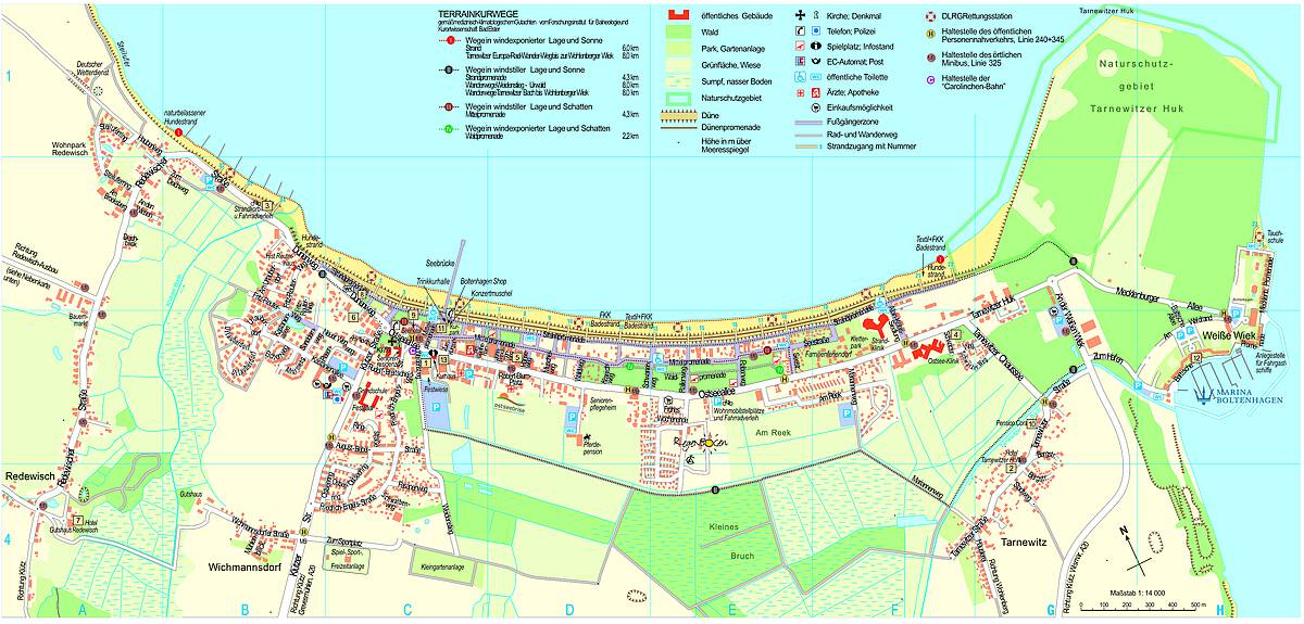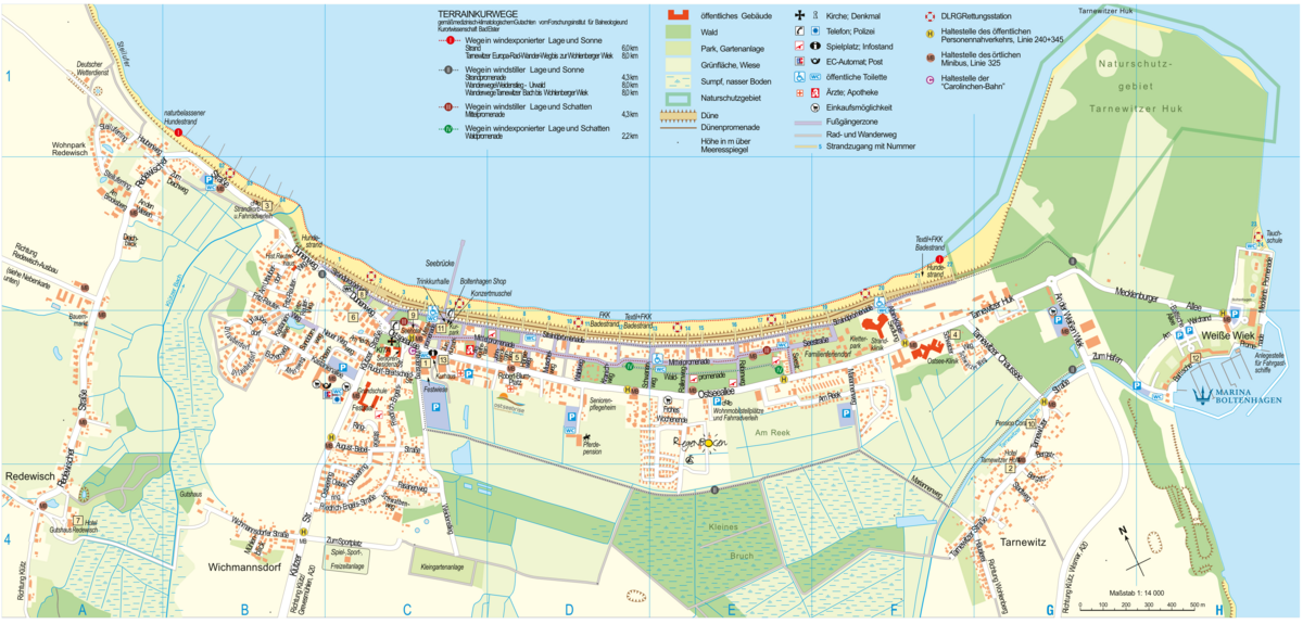 Der Stadtplan von Boltenhagen mit Promenade, Strand, Ortsteilen und Freizeitangeboten