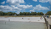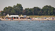 Der Strand erstreckt sich über rund 4,5 Kilometer und bietet abwechslungsreiche Abschnitte vom Naturstrand bis zum Familienstrand.